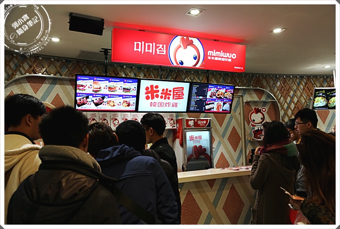 逛了一圈後發現最讓我們有興趣的就是這一家米米屋韓式炸雞了,這兩年因為韓劇的關係加上來自星星的你,韓式炸雞幾乎在台灣大街小巷夜市商圈通通都有,但是好吃的能吃的微乎其微,所以在南紡夢時代五樓看到有人賣韓式炸雞還是忍不住多看幾眼,看到排隊人潮相當的多,但是對這品牌老實說我真的相當的陌生,還是猶豫了一陣子,後來看跳號真的跳的飛快,才乖乖的趕快去排隊。 |
