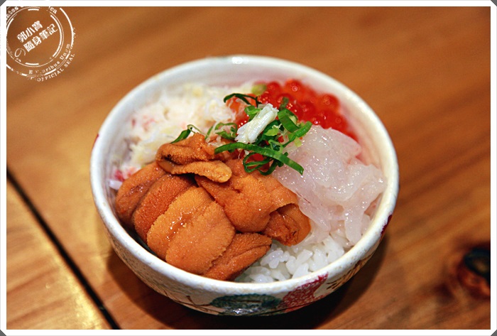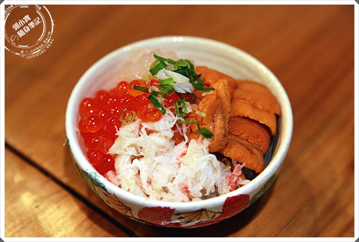 難忘海膽的美味,又點了一個小的海鮮蓋飯,小的蓋飯就超豪華了,超多片的海膽跟鮭魚卵,還有甜蝦肉跟蟹肉,重點不在米飯多寡,是在上面的海鮮都超豪華的啊!!!!