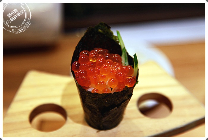 料多實在的鮭魚卵手卷真的太美味了,鮭魚卵份量多到都沿著手卷海彈下面滴出來了,真的不是蓋的,一口咬下的滿足感瞬間感覺到幸福。 |