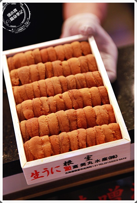 因為海膽相當的美味,所以又點了幾種海膽來吃,順便問了一下師傅海膽是用哪個地方的海膽,師傅大方的拿出日本空運來台一整盒的海膽給我們看,都是從北海道空運來台的。 |