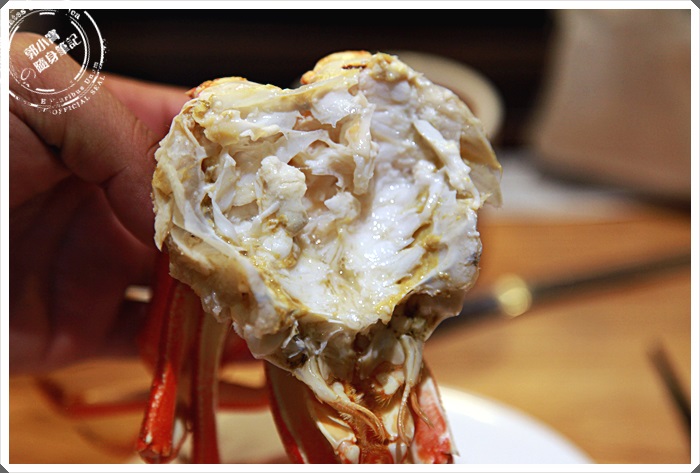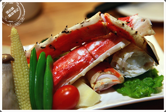 帝王蟹腳給的份量相當的足,而且不是冷凍帝王蟹,因為口感一吃就是不一樣,除了本有帝王蟹腳本身的彈牙口感以外,一點都不會像冷凍帝王蟹一樣爛爛的口感,還可以吸允到鮮甜的汁液,剪開帝王蟹管每一塊蟹管肉都讓人心醉。 |