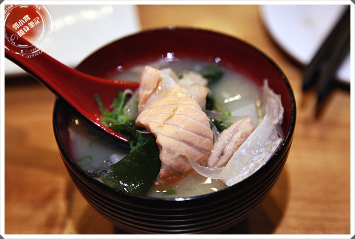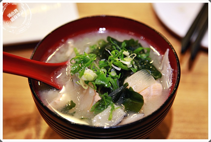 味噌湯是免費提供,裡面還有大塊的魚肉跟配料,喝完還可以續碗,這個相當的大心!! |