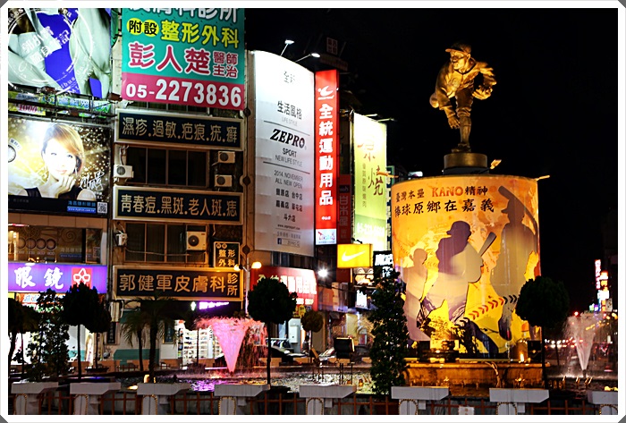 每每到嘉義總有吃不完的小吃美食,自從魏導監製了這部天下嘉農的電影後讓嘉義湧入更多的觀光人潮,而嘉義的美食中心就是文化路上的文化商圈,這夜市商圈大概是幾十年來嘉義的美食重鎮,稱他為嘉義的廚房應該一點也不為過,嘉義文化夜市圓環現在也佇立了天下嘉農投手的雕像,還會360度旋轉呢! |