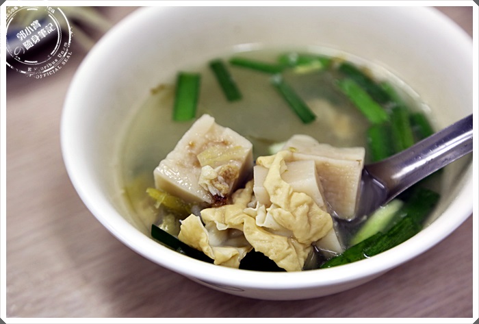 吃雞肉飯一定要在點上一碗粿仔湯這是嘉義人特殊的配法,粿仔湯也是郭家的招牌,將一塊塊切角丁的粿仔入湯一起熬煮,一口雞肉飯一口粿仔真的超過癮的。 |