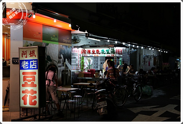 隱身在路口邊的阿娥豆花也是相當具有知名度的,在這邊開店也已經幾十年了,路口旁的幾張小方桌永遠都有人潮正低頭品嘗阿娥豆花。 |