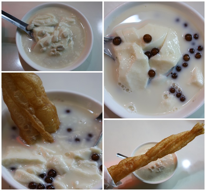 在嘉義豆漿配上豆花似乎是不成文的規定了,喝起來味道相當的濃郁,珍珠口感比較一般,豆花吃起來比較粉一點,是相當特別的口感,入境隨俗的一定要搭配上一根油條啦!! |