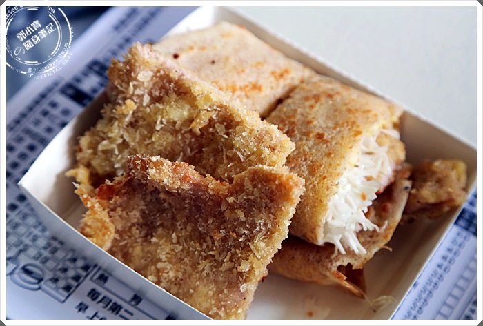 除了新生早點以外,斜對面不遠處還有一家峰炸早餐,也是相當具有高人氣的,這些早餐都是比較屬於日本傳統式的作法,這邊最有名的就是蛋餅,但是這邊的蛋餅夾的是炸豬排根雞排,是不是很威風的蛋餅,豬排炸得相當的酥脆,肉汁也相當的滿,一口咬下真的相當的滿足。 |