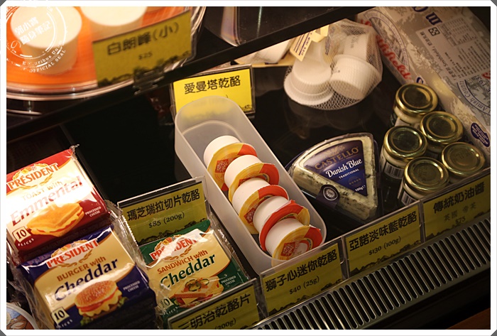 冷藏櫃上的蛋糕看到價錢就讓我有一點驚訝,因為都還滿平價的,除了這些以外還有我超喜歡的奶油,很多大牌的奶油這邊都有單顆販售,連乾乳酪都有呢! |