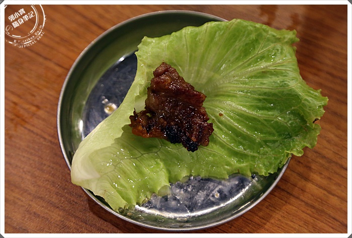 牛肋肉吃起來好軟口,咀嚼幾下那噴發的油脂真的好豐沛,醬汁微甜不膩,包著生菜吃也別有一番風味呢! |