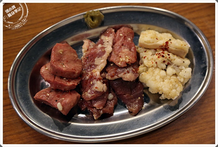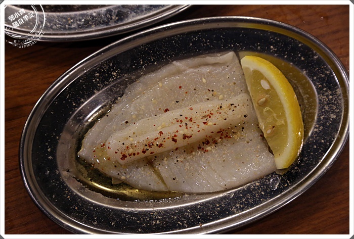 當中我最推薦的就是他們家的厚切牛腸,吃起來不僅沒有甚麼怪味道,那滿是油脂的化口帶點微Q的咬勁真的相當的迷人,還有內臟都會在盤子旁邊放上柚子醬,記得一定要沾上他,那柚香迷人且帶點鹹味的滋味讓人難忘。 |