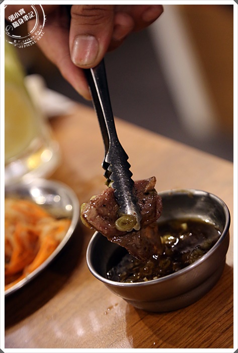 烤好的顏色跟香氣都相當的誘人,一直忘記跟高雄的朋友分享一下,這位日本老闆雖然店名叫大阪燒肉,但是店是開在東京,且他有四分之一血統是韓國人,所以可以看到日式燒肉店裡面卻有著很多韓國燒肉的元素,醬汁的部分也比較韓國居多。 |