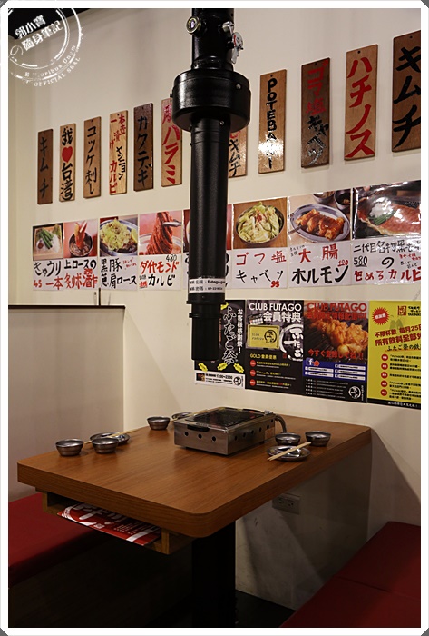 大阪雙子燒肉的裝潢本身就很日式,沒有過多的裝飾跟木板,將店內的菜單跟手寫推薦單貼在牆上,搭配著照片,這樣確實就是日本當地的燒肉店特色了,抽菸館就在烤爐的正上方,吸力也相當的強,所以煙並不會很多,店內的提供的網路帳密就貼在抽菸管上。