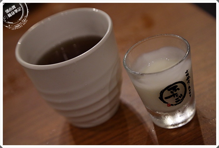 飯後服務人員會送上來一杯優酪乳以外,還有一杯熱麥茶,不過我左看右看總覺得這優酪乳杯怎那麼像清酒杯,問了一下還真的是清酒杯耶XD |