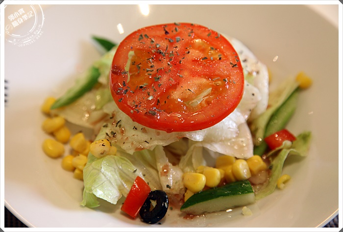 套餐沙拉吃起來頗為普通,但是Livia自己條的醬汁卻比較合我的胃口,酸中帶甜的滋味讓人胃口大開。 |
