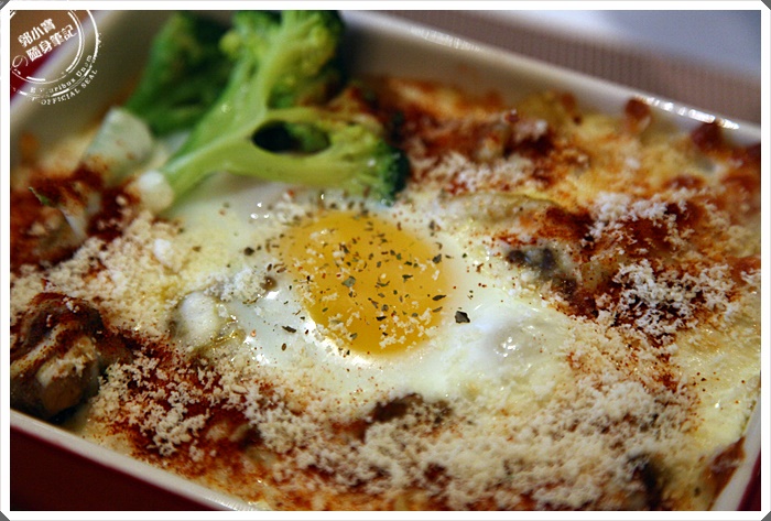 打顆蛋後再放進烤箱焗烤,完成在撒上起司粉,看起來確實頗為美味。 |
