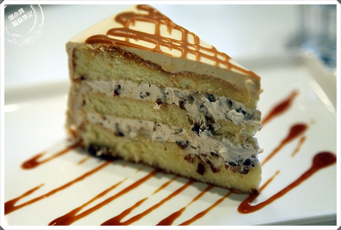這一款蛋糕友人超級稱讚的,吃起來裡面的口感有點像是海綿蛋糕,但是酒香卻是綿密細緻的陣陣撲來,偶而帶點葡萄乾的點綴相當不錯,主要甜度不會太甜,更有機會去發現蛋糕裡面的其他味道,蛋糕體本身不會太過乾或是濕潤,拿捏的尺度恰恰好,這一點我還滿喜歡的,整體上是還滿特別,很少吃到這類型的蛋糕。 |