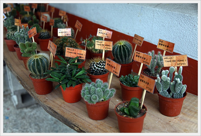 門口有很多小仙人掌都超可愛的,這每一盆小仙人掌都有販售。 |