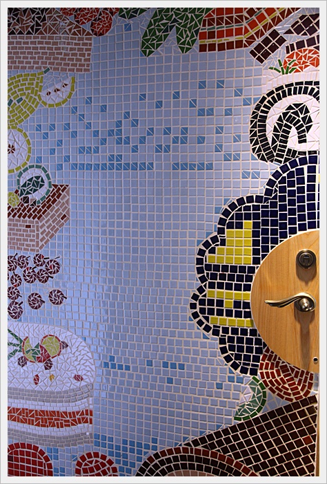 2號店的木門是用馬賽克磚拼貼出來的可愛圖案,看了心情就覺得很好,讓心情都繽紛的起來。 |