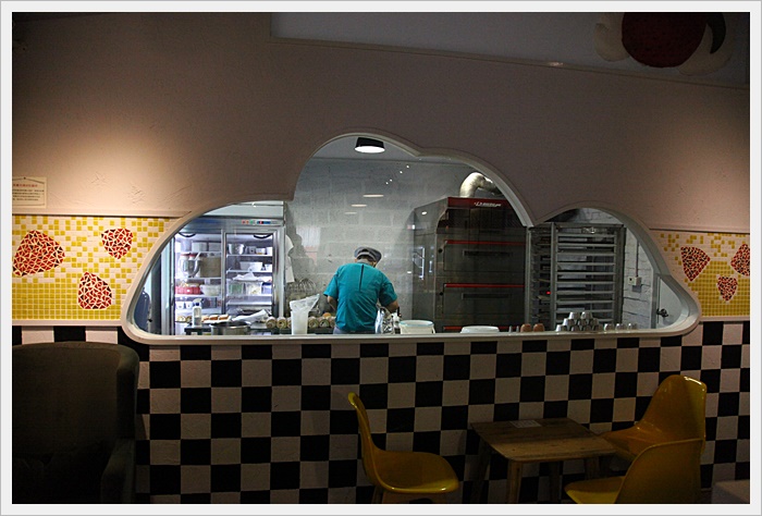 2號店裡面還有一個烘培廚房,透過透明廚房的玻璃,可以完整的看到生乳捲的製作過程,透過玻璃窗可以看得很清楚,裡面相當的乾淨,且每製作一次裡面的人就會把用具清洗一次,不會因為反覆在製作烘培,所以器具都沒洗。 |