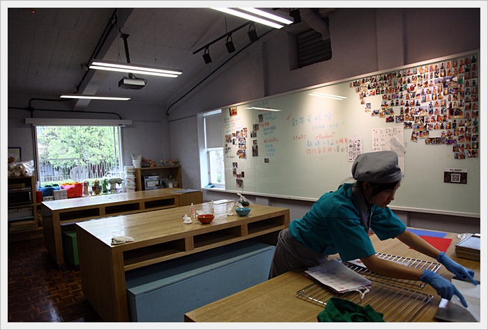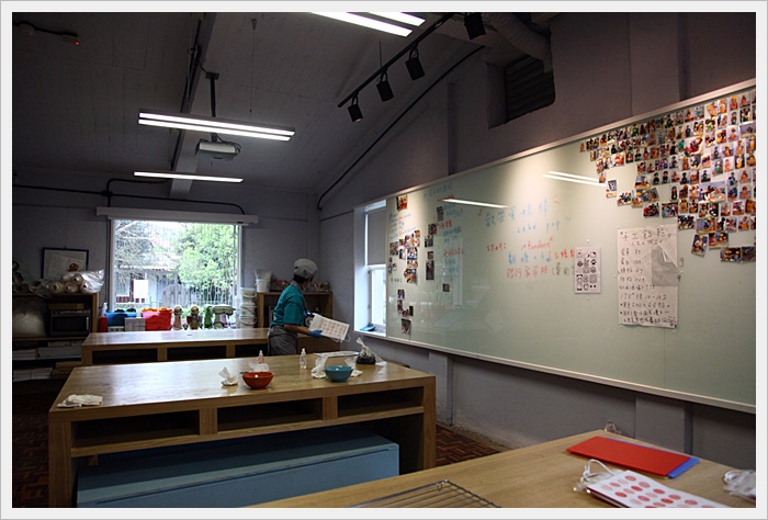 裡面最大的一個大房間就是親子DIY的教室,當天剛好有人DIY結束所以我順便可以偷拍一下,一進去就聞到陣陣的香氣,一問一下才知道剛剛小朋友們在烤餅乾,好像很有趣的感覺。 |