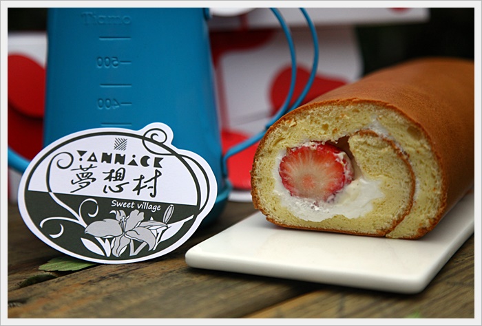 在原味的十勝生乳捲裡面加上每天新鮮配送的大湖A級草莓,因為新鮮配送的關係,所以每天下午一點才製作,最快兩點第一批出爐,每一顆草莓都是超大顆又甜,是夢想村限定版的明星招牌商品! |