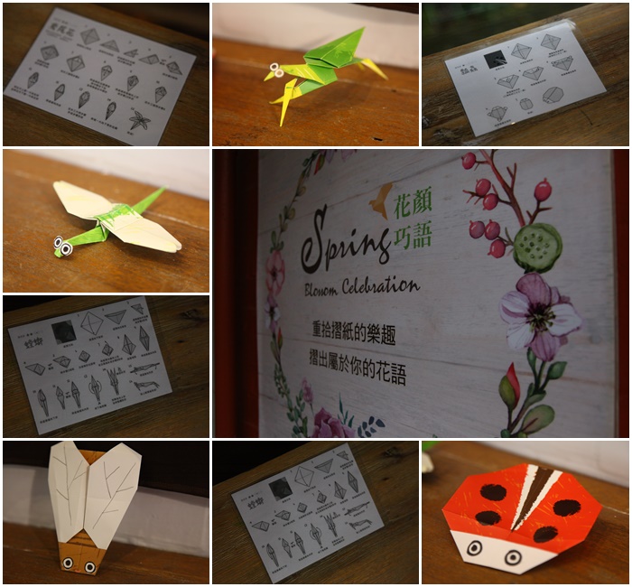 不管是1號店還是2號店,每個桌子上都有貼上折出昆蟲或是花朵的步驟跟介紹,可以照著步驟一步一步折就可以折出很多花朵跟昆蟲,昆蟲的種類還滿多的,有的好可愛唷,目前我覺得螳螂最難折,蜻蜓也滿難的,這個小朋友超喜歡的,我折完後隔壁的小朋友就一直用水汪汪的大眼睛看我,我就默默地送給他了QQ |