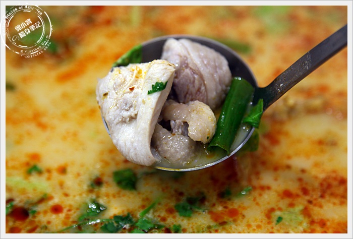 一樣先喝湯頭,聞起來椰奶的香氣滿重的,但是入口後辣味先衝了出來,椰奶的味道淡了許多,有點像是豬骨白湯的感覺,也相當的好喝,辛香料味道比較重,向是改良版過的叻沙,滿合我的口味的,正統的叻沙其實我有一點怕XD |