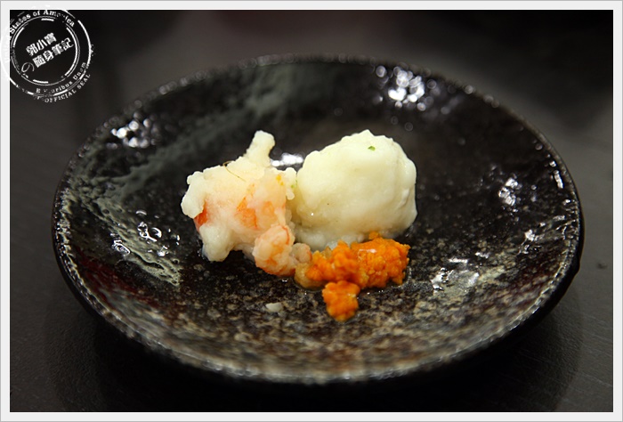 看看手工蝦漿撈起來後根本就是蝦肉為主魚漿為輔,夾著蟹黃一起吃真的美味!另一顆 |