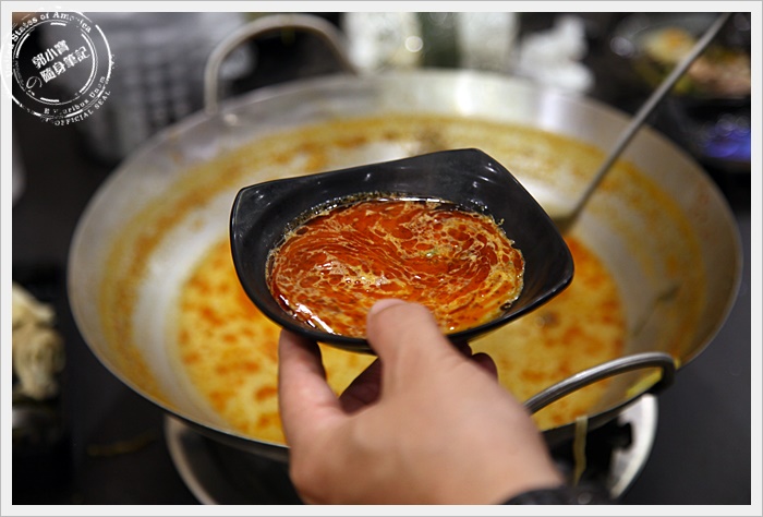 把裡面的食材都撈起來後,再把香辣鍋浮在上面的辣油也另外撈起來,店員說忙得過來的時候都會幫忙撈油,真的很忙可能要讓客人自己動手來了。 |