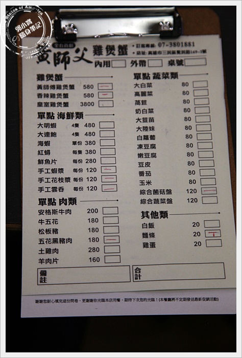 看完菜單後第一個感覺就是台灣賣的價位真的太便宜了,通常火鍋很多人都覺得海鮮跟山產入鍋滋味不搭,但是吃完黃師傅雞蟹煲,我真覺得超級搭的!!!!!