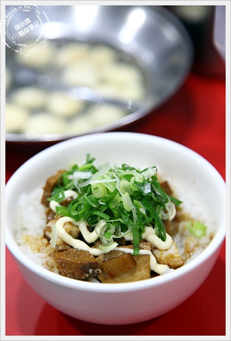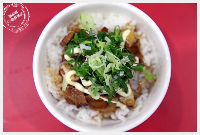 贈送的蔥叉燒飯看起來超可口的,醬汁加上美乃滋還有蔥花超搭的,分量雖然沒有很大,但是一碗吃完有意猶未盡的感覺,好想再續一碗,肉塊切的一點都不會小氣,對於贈送的來說,這相當的大氣了! |