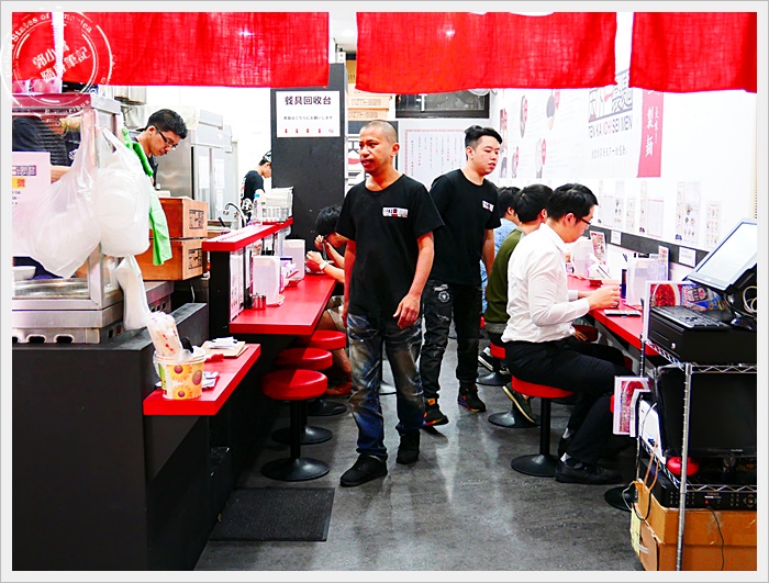 當天我們是晚餐時間後才去,但是人潮還是很多,簡單樸實的店面看起來跟日本是相差無幾,台灣太多日本拉麵店的裝潢都有點失去了日本拉麵小店的風格了,全部都是吧檯座位相當有感覺。 |