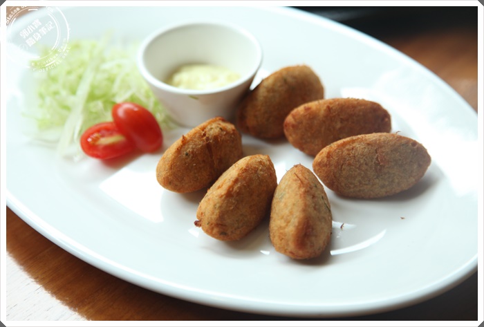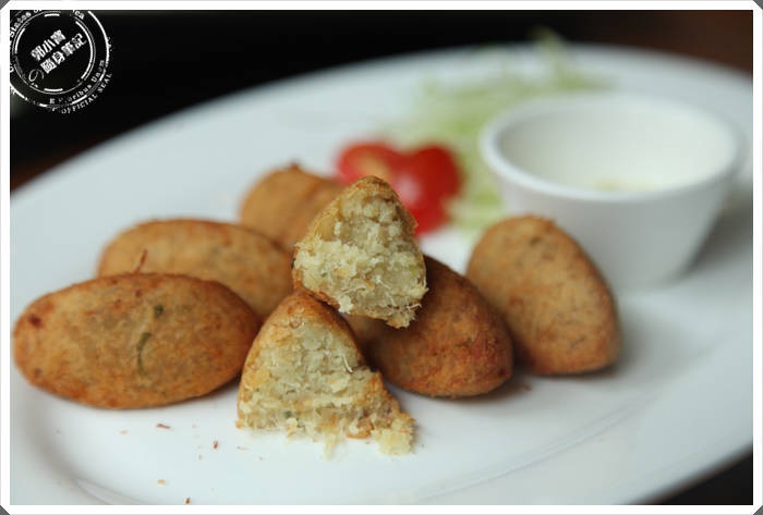 乍看之下感覺單價滿高的薯茸馬介休球,後來得知新帆船的做法之後瞬間感覺滿便宜的,目前新帆船的薯茸馬介休球還是手工製作,真材實料的馬鈴薯搗泥後用湯匙手工捧球一顆顆的製作出來,上桌的時候說真的,我沒想過馬鈴薯的香氣也可以那麼的濃郁誘人。 |