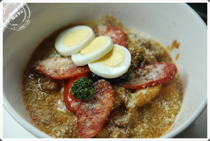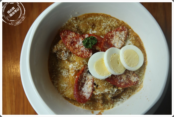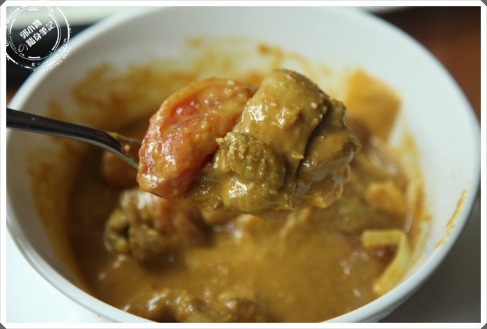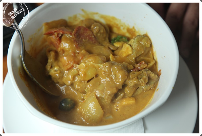 一上桌光是香氣就讓我拍照速度加快了,這椰香也太厲害了,不是很濃郁的那種,但是你就是可以感受到那舒服的淡淡椰香飄了過來,裡面的雞肉看起來還滿多的,還有葡式香腸,只要你吃過一次葡式香腸你也會跟我一樣喜歡上她的。 |