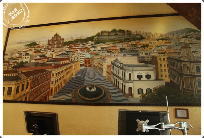 餐廳內掛的這一幅畫是當初新帆船餐廳在澳門時望出去的風景,老闆娘特地請人畫了這一幅畫,讓台灣人可以在東區的新帆船餐廳也可以看到澳門的風景。