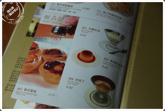 港澳地區的傳統甜點,基本上我在港澳地區吃過很多木糠布丁,幾乎每一家的口感都不太一樣,大部分的口感都是偏乾帶點餅乾口感,新帆船澳葡餐廳的木糠算是做的比較精緻的。 |