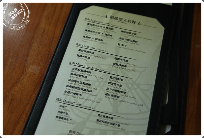 新帆船澳葡餐廳的餐點其實滿多樣化的,從午晚餐的澳葡菜到下午茶的扒包跟甜點奶茶通通都有,不管任何時候都還滿適合來坐一坐的,這次是約中午來吃飯,下次我還滿想來試試看他們家的扒包,台灣好像不是很容易可以吃到道地的扒包。 |