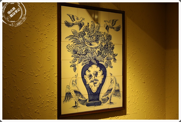 走進門前的小台階上就有一個澳門傳統的版畫,彷彿真的來到澳門般的感覺,有去過澳門的朋友應該對這藍色版畫都不陌生,這樣選擇新帆船其中的一個原因就是馬鈴薯,因為葡萄牙菜的主食其中一個就是馬鈴薯,所以馬鈴薯做了很多變化融入了葡萄牙菜,在經過澳門當地的口味加以變化,馬鈴薯的魔法師絕對是澳葡菜第一把交椅了。 |