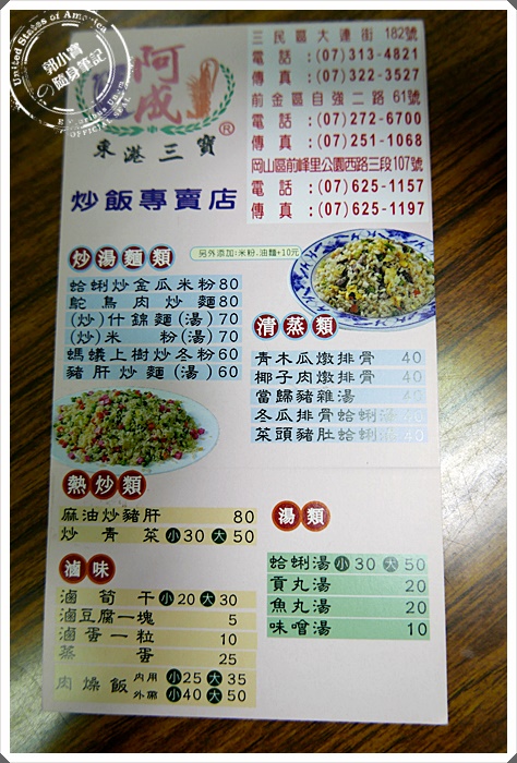 ‧您所在的位置: 郭小寶‧這就是青春 > 郭小寶全省食況轉播 > 日本美食景點輕旅行.桃太郎行程精選 > 『食記美食。高雄前金』阿成炒飯專賣店 自強店|超強種類最多的炒飯專賣店|還票選過前十名的炒飯專賣店唷|