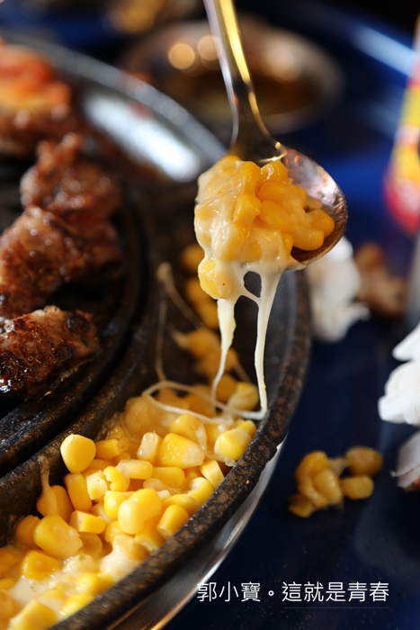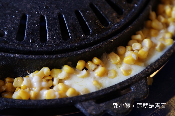 最銷魂的玉米起司是年輕人的最愛,看看這牽絲的萬惡之首,光是這些配色就夠我搭配白飯狂吃到飽了,雖然沒有收服務費,但是服務人員還滿勤勞的幫忙把配菜補滿,除了自取餐具以外,其實外場服務生還是樣樣服務都來,真的太感動了。