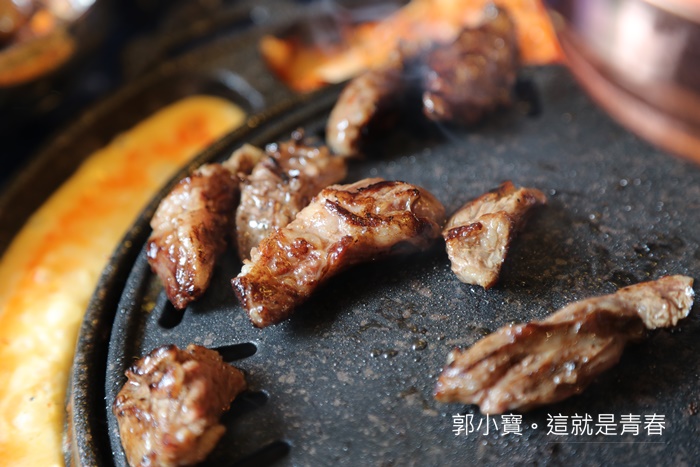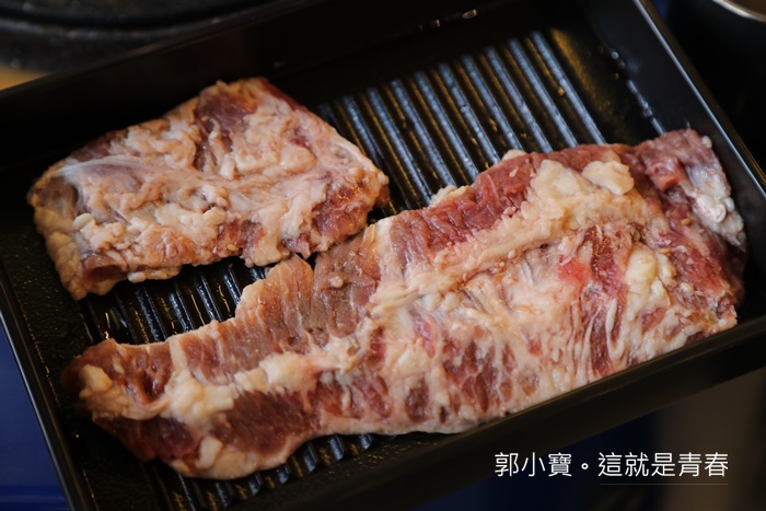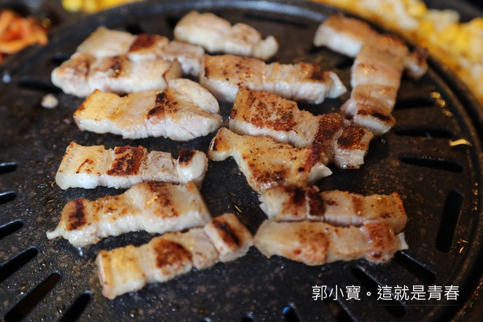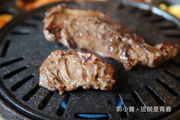 肉的份量頗多,立馬放上烤盤上滋滋作響,服務人員第一次都會大致上跟妳說明如何烤比較好吃,如果有空它們會盡量來幫忙稍微烤一下或是提醒可以翻面,明明就沒收服務費還這麼貼心,超感動。
