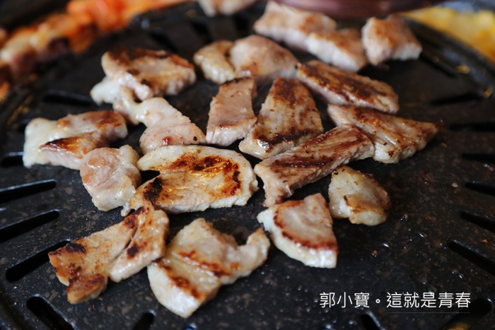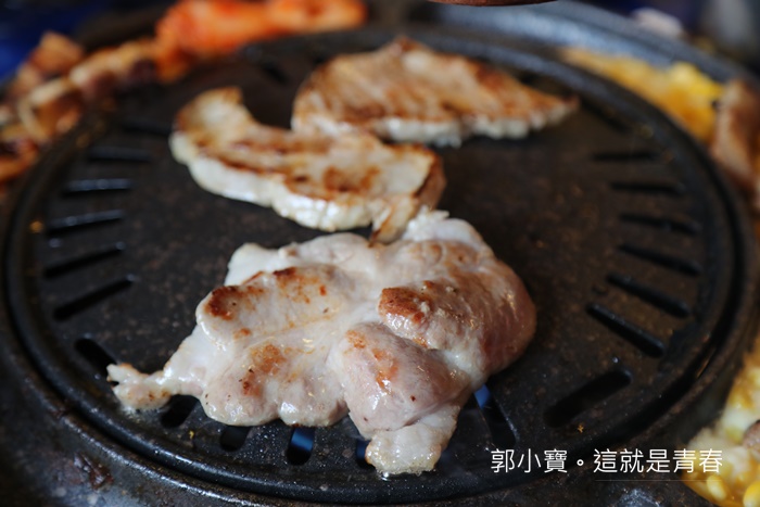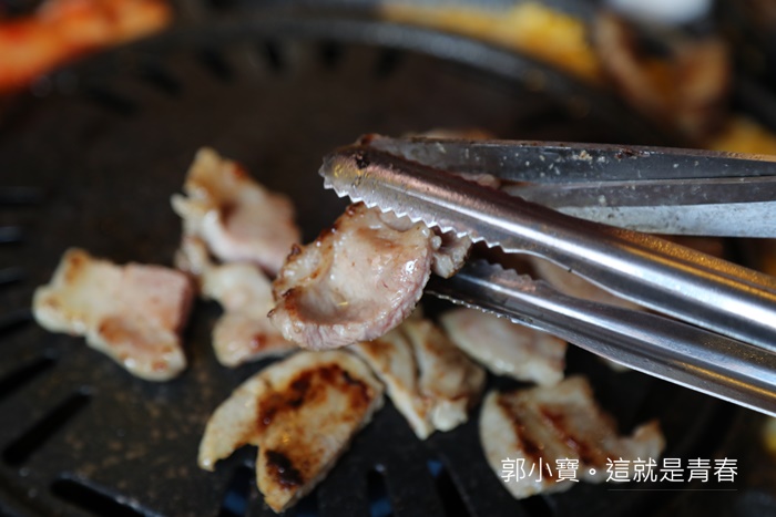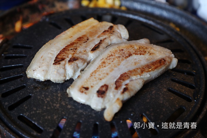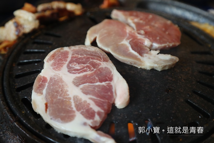 梅花豬則是當天女性朋友比較愛,口感完全跟五花烤起來完全不同,如果有三個人以上一起去的話,建議可以三種肉都點來試試看,一起分食享受每一種肉品不一樣的美味。