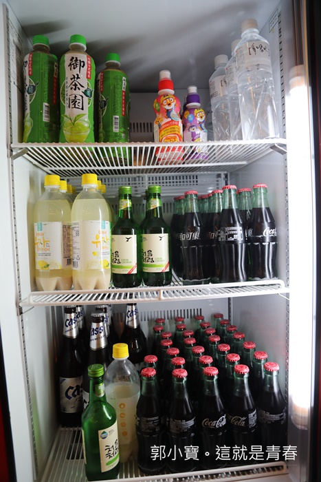 飲料櫃裡面都是韓國的米酒、燒酒根啤酒非常豐富,來這邊站著吃燒肉搭配韓國酒飲真的頗有來到韓國新村燒肉的感覺,軟性飲料只有可樂跟御茶園兩種選擇。