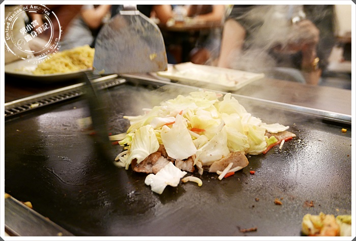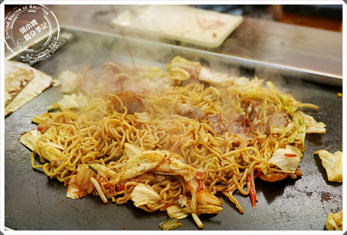 一整個色香味俱全阿~~~~~寶妹真的超愛日式炒麵,一整個內心尖叫!冒出的煙傳出陣陣香氣,都是日式炒麵醬的香味,鐵板上滋滋作響實在是讓人食指大動 |