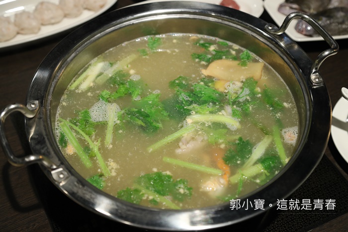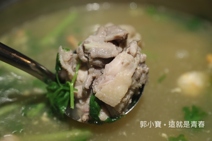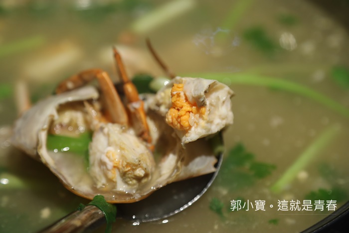 雞煲蟹理所當然裡面就是要有雞肉,它們家的雞肉是使用土雞肉,重點來了,湯鍋上來的時候,員工都會建議你先喝一碗湯,先品嘗他的原味,喝下去其實沒有太重的味道,一點點鮮甜的滋味,之前在高雄喝的時候雞粉下的有點重,但是這一家的喝起來非常天然。 |