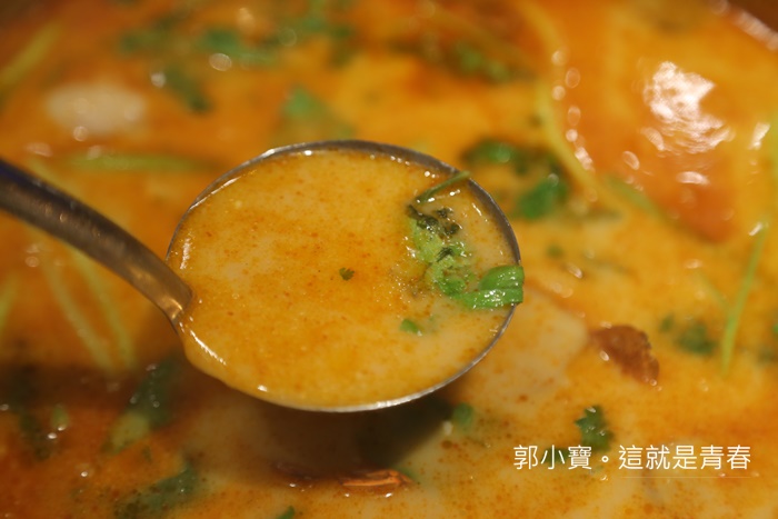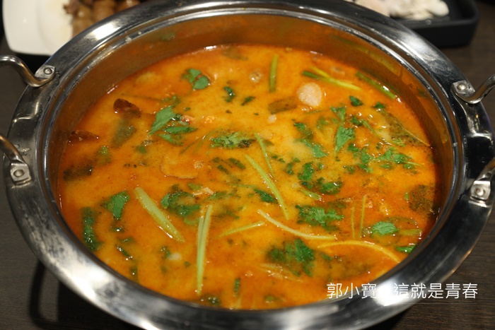 香辣鍋底的鍋底料都是一樣有土雞跟螃蟹,湯頭的部分比較南洋風,一口喝下還滿好喝的,帶點椰奶的香氣,不過辣椒的香氣會從舌尖滑出,香辣果然也不賴。 |