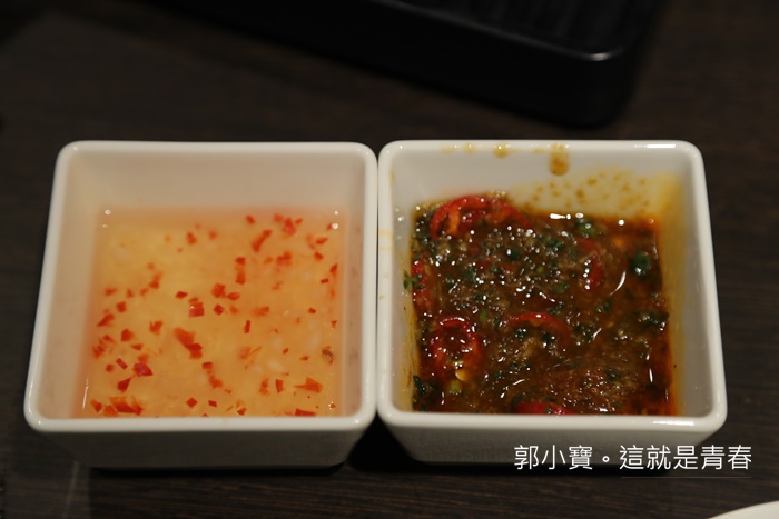 店員幫我準備的兩款醬料,醋醬是沾海鮮的,另一款醬料看起來很普通,但是沾起來完全顛覆你對醬料的想像。 |