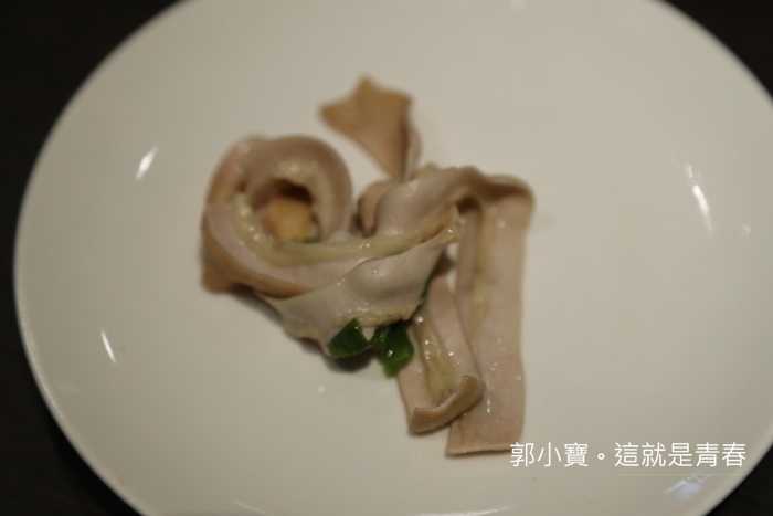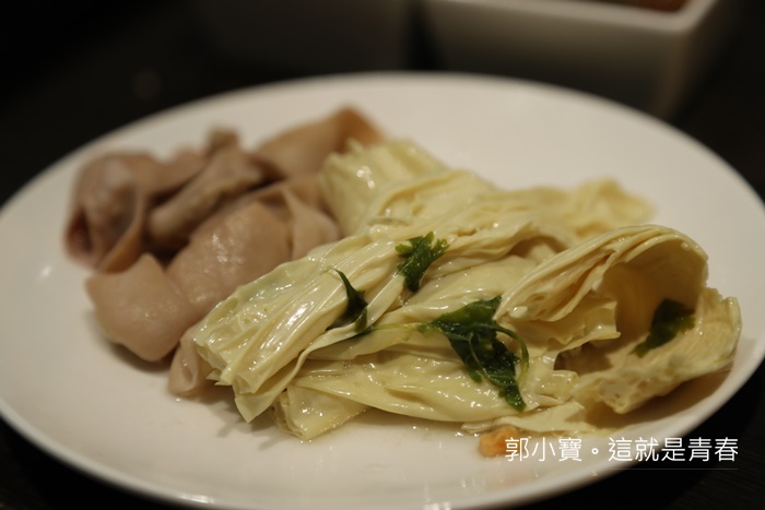 支竹是我另一個超有印象的食材,我一開始還以為是美濃的腐竹,後來聽潘師傅說才知道這是香港道地的支竹,在台灣目前沒有人使用,吃起來的感覺就是介於腐竹根豆皮的中間,帶點脆口卻有著濃郁的豆香味,一整盤都是我一個人吃完的,我個人本身就很喜歡吃豆皮跟腐竹,但是支竹的口感真的太討我的歡喜了XD |