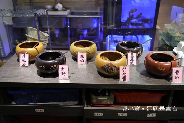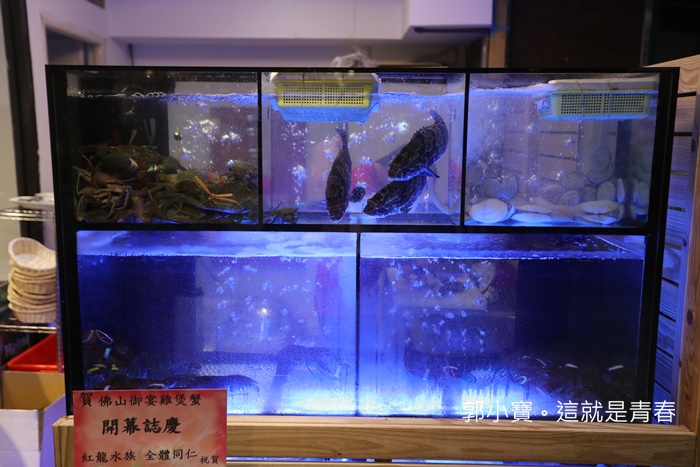 佛山御宴雞煲蟹外面還有幾個低溫大水缸,這次不只雞煲蟹,還多了很多的生猛海鮮,看來這湯頭真的越來越能讓人期待了,這天跟幾個好朋友相約於此,就是一起來捧場的,這家店的來頭不小,光是技術指導就有一堆香港廚神了,加上潘師傅本身就是把佛山火鍋帶來台灣的人,加上許多名廚幫忙,一開店就廚神一堆站台。 |
