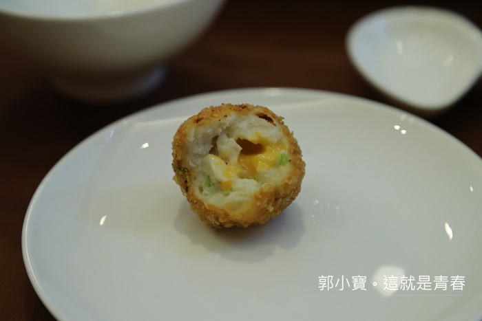 看起來跟入口完全不一樣的一道菜,墨魚丸炸的相當漂亮,入口爆口而來的滑順濃郁起司搭配墨魚漿彈牙口感,一整個完全種了我的點! |